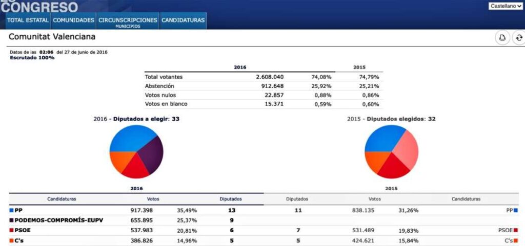 Resultados Elecciones Generales 26 de junio en la Comunitat Valenciana
