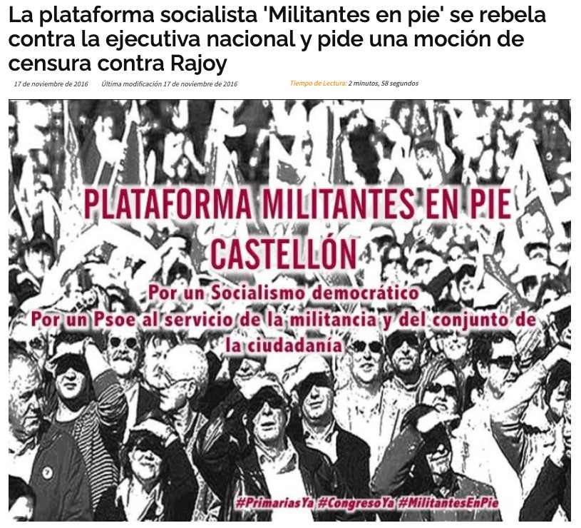 Una de las zonas que lideraron los apoyos a Pedro Sánchez fue la provincia de Castellón con la plataforma Militantes en pie.