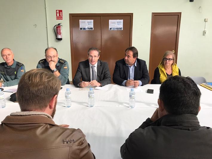 La cifra de infracciones penales en el campo en la comarca del Baix Maestrat han descendido un 4% en la vigente campaña respecto a la anterior. El dato lo ha puesto de manifiesto el subdelegado del Gobierno en Castellón, David Barelles, en el transcurso de la reunión comarcal de seguridad que ha tenido lugar en el municipio de Sant Rafael del Río y que ha estado centrada en la protección de las cosechas agrarias. En la reunión han tomado parte, además del alcalde del municipio anfitrión, Domingo Giner, otros 15 representantes municipales de los municipios del Baix Maestrat (Alcalà de Xivert, Benicarló, Peñíscola, Vinaròs, Càlig, Canet Lo Roig, Cervera del Maestre, Xert, La Jana, Rossell, La Salzadella, Sant Mateu, Sant Jordi, Santa Magdalena de Pulpis y Traiguera), además del coronel de la Guardia Civil, Miguel Fresneda, así como representantes de las organizaciones agrícolas la Unió de Llauradors y Fepac-Asaja.