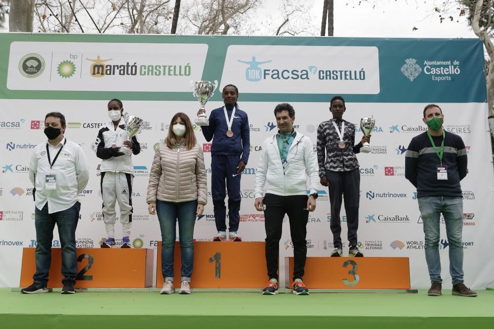 10K Facsa: En el podio masculino el oro ha sido para Ronald Kwmoi, la plata para Samwel, Chebolei y el bronce para Tadese Takele. En el podio femenino el oro ha sido para Yalemzerf Yahualaw, la plata para Vicoty Chepgeno y el bronce para Merci Cherono.