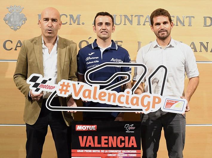 El concejal de Deportes del Ayuntamiento de Castellón, Enric Porcar, el director general del Circuit de la Comunitat Valenciana Ricardo Tormo, Gonzalo Gobert y el piloto mundialista Héctor Barberá (MotoGP), han presentado esta mañana en el Salón de Plenos del Ayuntamiento el Gran Premio Motul de la Comunitat Valenciana de motociclismo, que se celebra en el Circuit del 6 al 8 de noviembre.