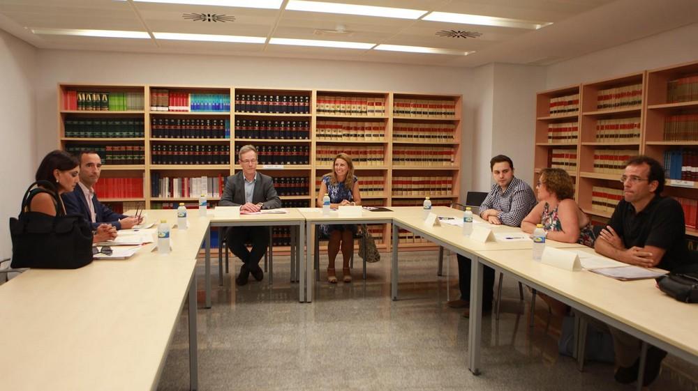 La alcaldesa, Amparo Marco; los tenientes de alcalde Ali Brancal y José Luis López, el concejal Iñaki Vallejo; el presidente de la Audiencia Provincial de Castellón, José Manuel Marco Cos, y el Juez Decano de Castellón, José Luis Conde-Pumpido. Se han reunido esta mañana en la Audiencia Provincial de Castellón, para tratar el tema de los desahucios.