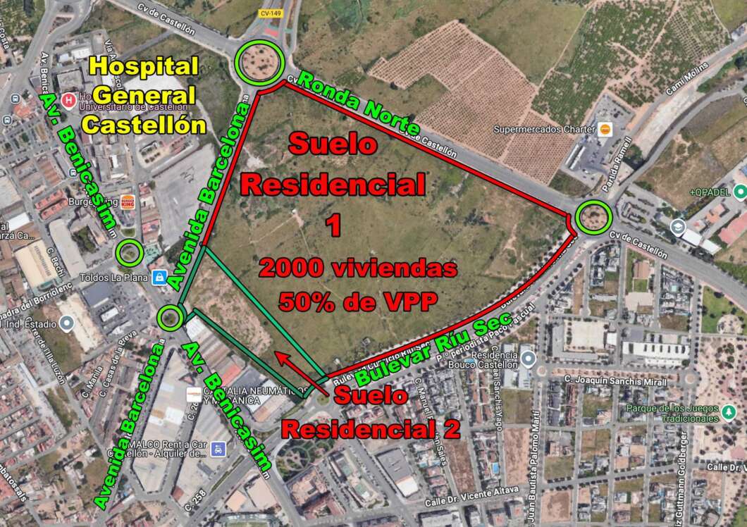 Para que se haga una idea el lector, esa urbanización afecta todo el terreno situado en el norte de Castellón entre el Hospital General y la Rotonda de los caballitos, una de las más grandes que se haya desarrollado con anterioridad.