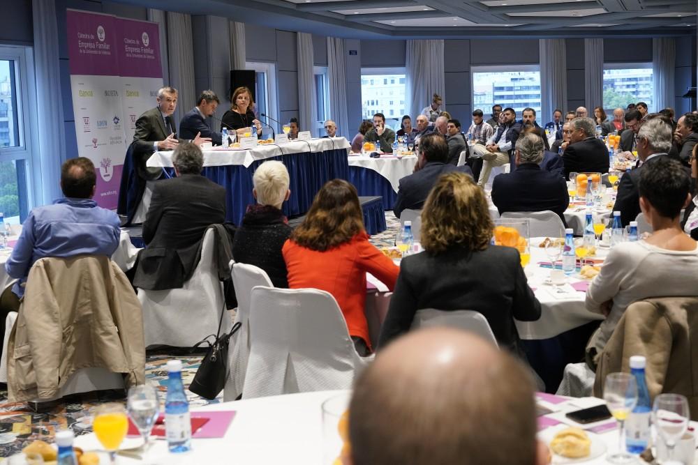 Hoy, martes 03 de diciembre, la Cátedra de Empresa Familiar de la Universitat de València (CEF-UV), promovida por la Asociación Valenciana de Empresarios (AVE), la Escuela de Empresarios (EDEM), el Instituto Valenciano para el Estudio de la Empresa Familiar (IVEFA) y el Instituto de la Empresa Familiar (IEF), y cuenta actualmente con el patrocinio de Bankia y Broseta Abogados ha celebrado un nuevo desayuno bajo el título: “Las empresas familiares ante el desafío del crecimiento” y a la que han asistido más de 100 empresarios y directivos de familias empresarias.
