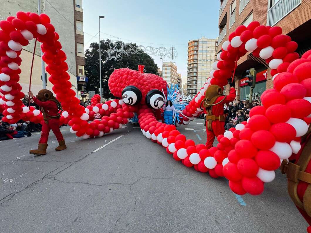 El ecuador del desfile lo ha marcado la actuación de la banda de Países Bajos, Kamper Trompetter Korps, seguida de una de las animaciones más espectaculares de la tarde: un pulpo gigante confeccionado con globos que ha despertado la curiosidad de los más pequeños, que han podido ‘sumergirse’ dentro de esta llamativa figura.