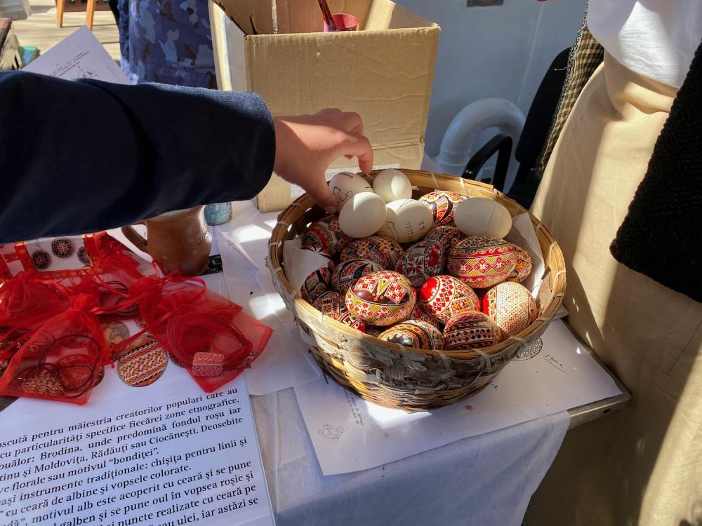 Comentaba la concejal Mónica Barbás, que ejerció de traductora y presentadora para Castellón Información que, en la religión ortodoxa, que es la mayoritaria en Rumanía, tienen la creencia de que, bajo la cruz de Cristo, se colocó un gran cesto con huevos que se tiñeron completamente de sangre. De ahí, que el huevo de pascua tradicional sea de color rojo, aunque ahora puede presentarse de múltiples colores.