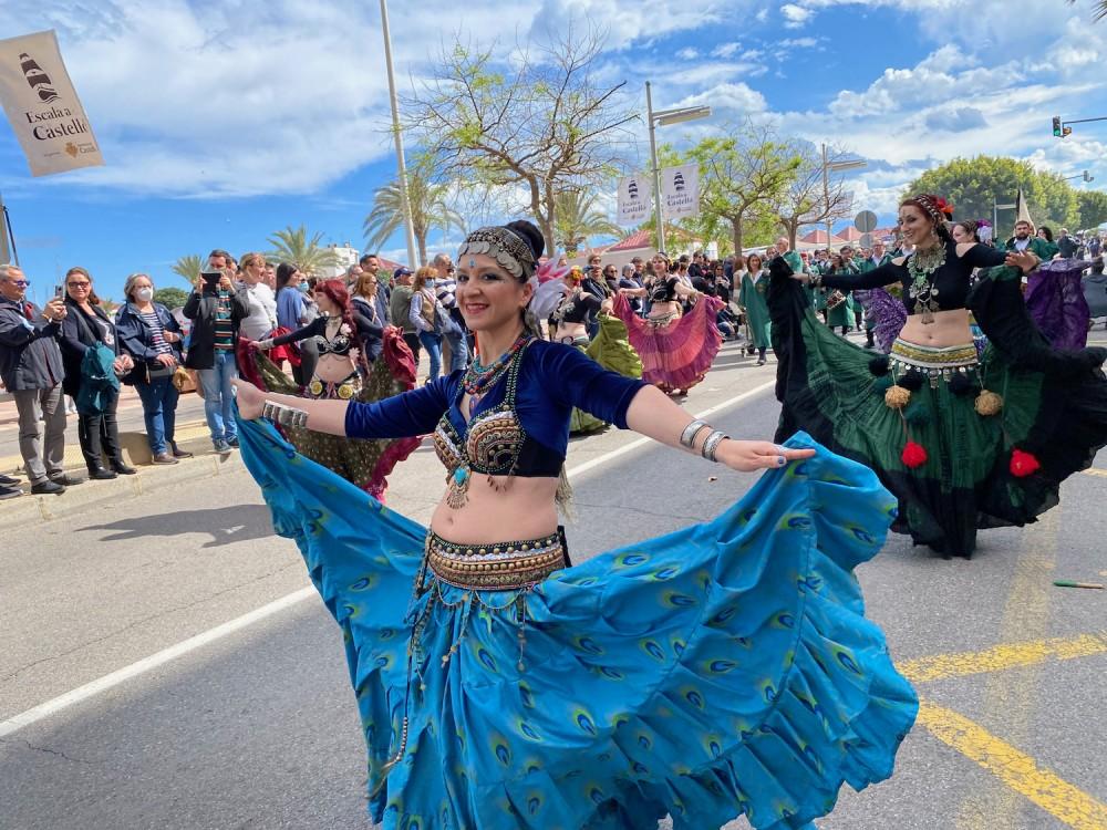 Pasadas las 16:30 horas de la tarde comenzó el desfile prometido. Soltó amarras delante del hotel Turcosa, con los botafocs y el silbido y el  humo de su pirotecnia. Tras ellos, se representaron Los Tercios españoles, con la bandera que los representó durante siglos en el imperio español. Luego llegaron las bailarinas exóticas que danzaron al son de la música. También desfilaron los ‘trabucaires’ y los antiguos nobles y conquistadores españoles, con el soldado leal que gritaba durante el recorrido: ¡Viva el rey!.