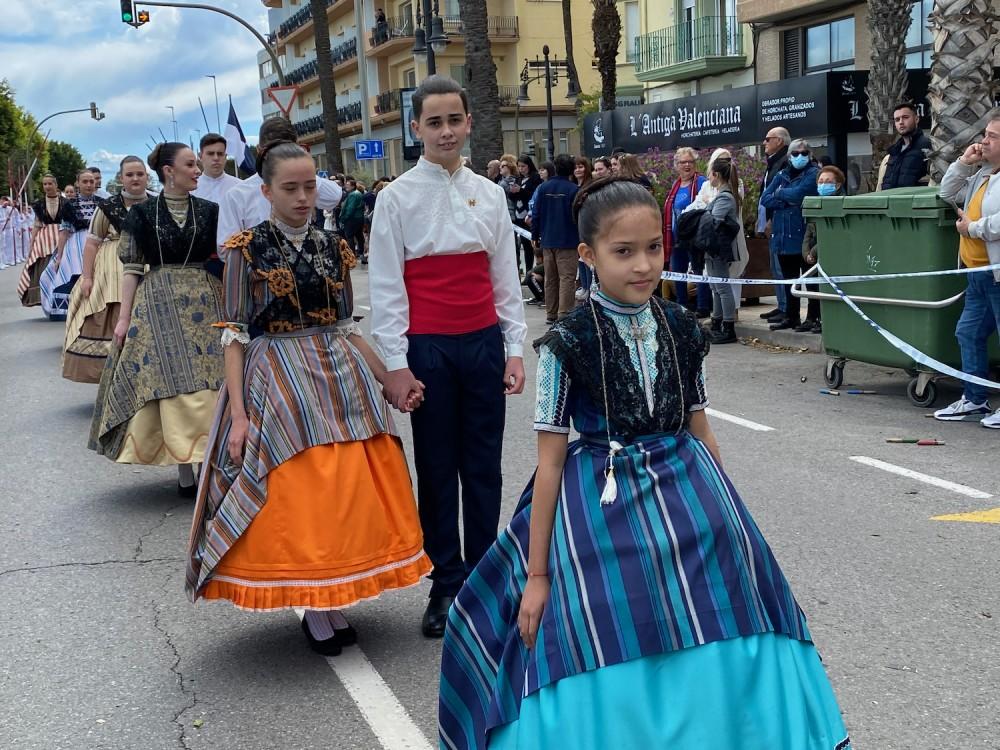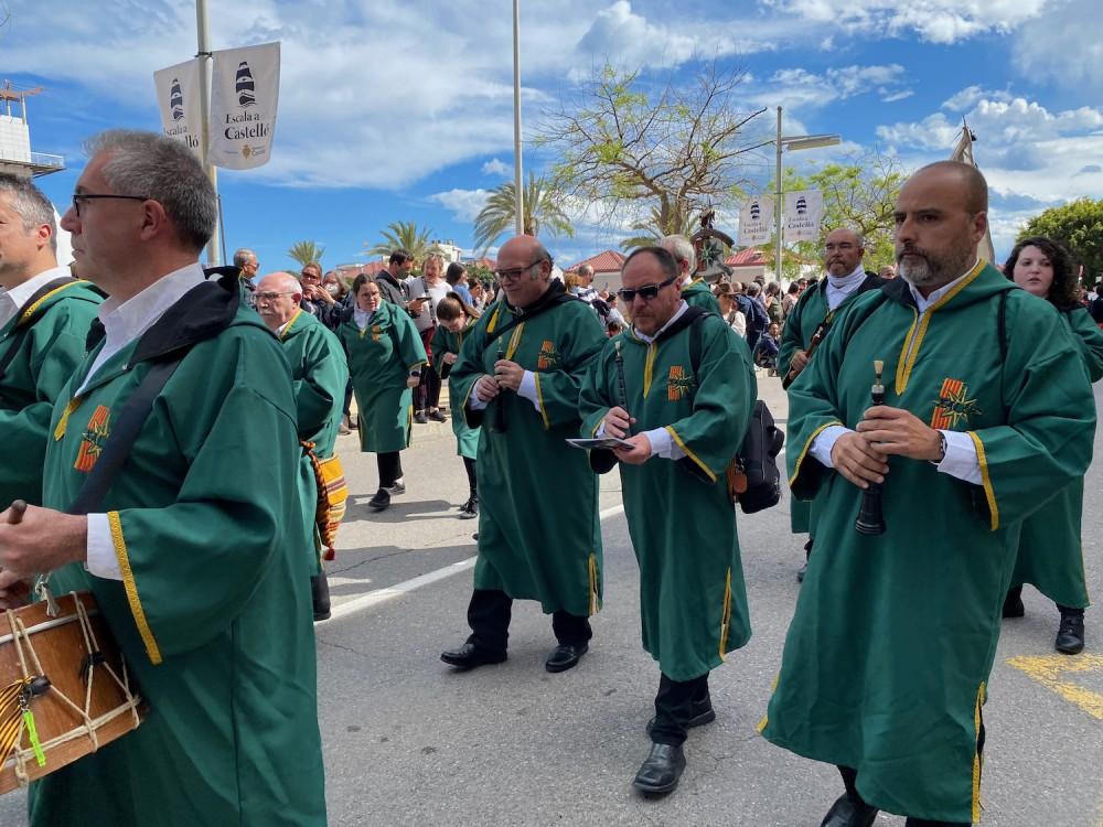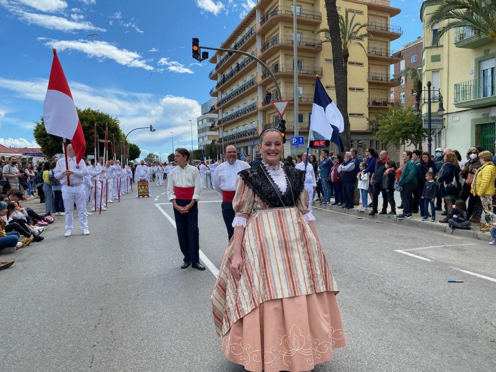 Y luego las tripulaciones de los otros navíos, entre ellos, los navegantes del Ciutat de Badalona, los de la Fundación Nao Victoria que navega en los barcos de la Nao Victoria, el Pascual Flores y El Galeón. Y tras el baile de la bandera del Oostersheld, finalmente lo hicieron las autoridades acompañadas por la Banda del Grau de Castelló.