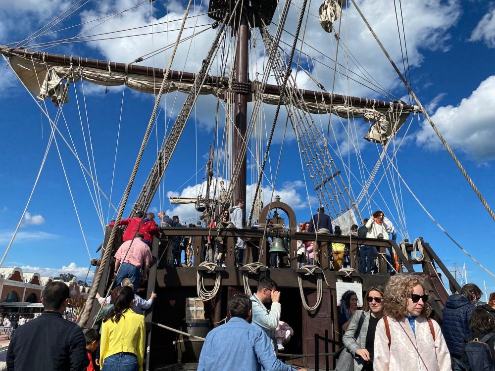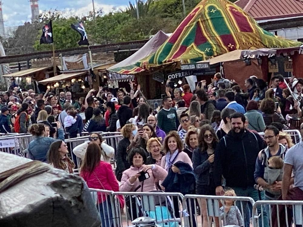 El desfile recorrió parte del Paseo de Buenavista del Grao para desviarse después y adentrarse en el muelle de Costa. De esta forma pasaron delante de navíos como el Galeón, que estaba lleno de visitantes ‘hasta la bandera’.