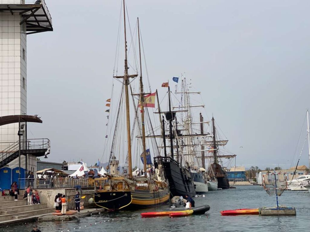 El Galeón, uno de los preferidos, la Nao Victoria, pero también el resto de la flota que lo acompaña este año: La Goleta Äran, la Goleta Cervantes Saavedra, el Pailebote Pascual Flores, todos ellos en el muelle de costa.