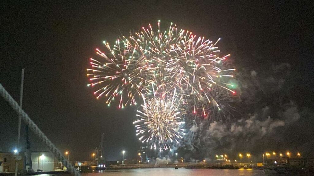 Y un castillo de fuegos disparado por Peñarroja dibujó el cielo y fue seguido desde el Puerto por los muchos visitantes que todavía vivían la fiesta y los asistentes al concierto, que tuvieron marcha para rato.