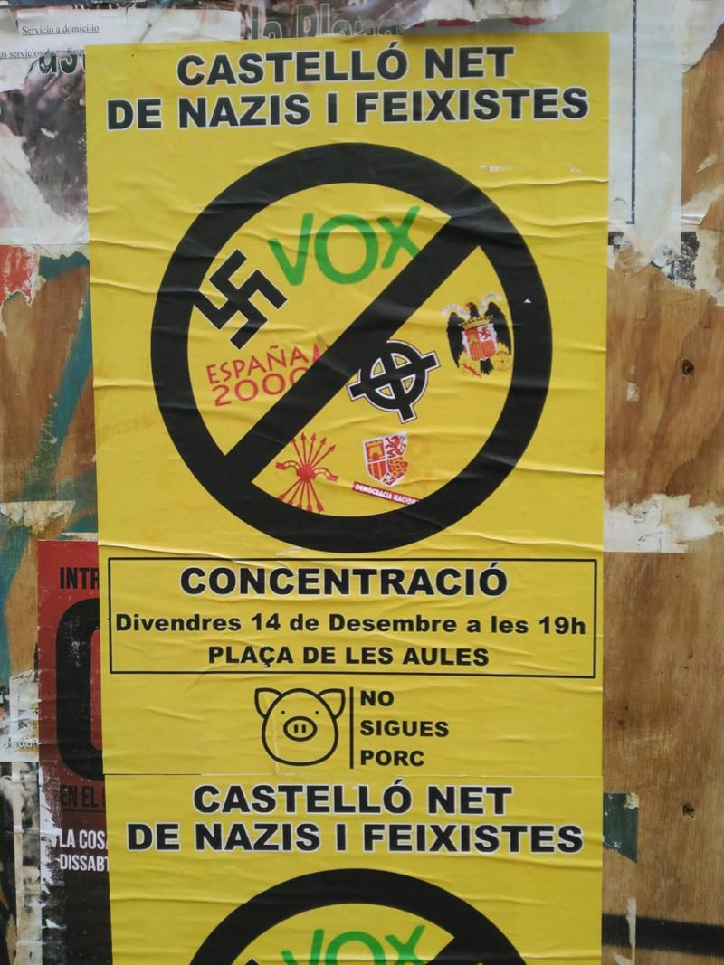 La actividad no llegaba sola, por la tarde se había convocado una manifestación contra los partidos 'calificados' de fascistas o nazis, entre los que se nombraban agrupaciones políticas de derecha, legalizadas, entre ellas VOX.