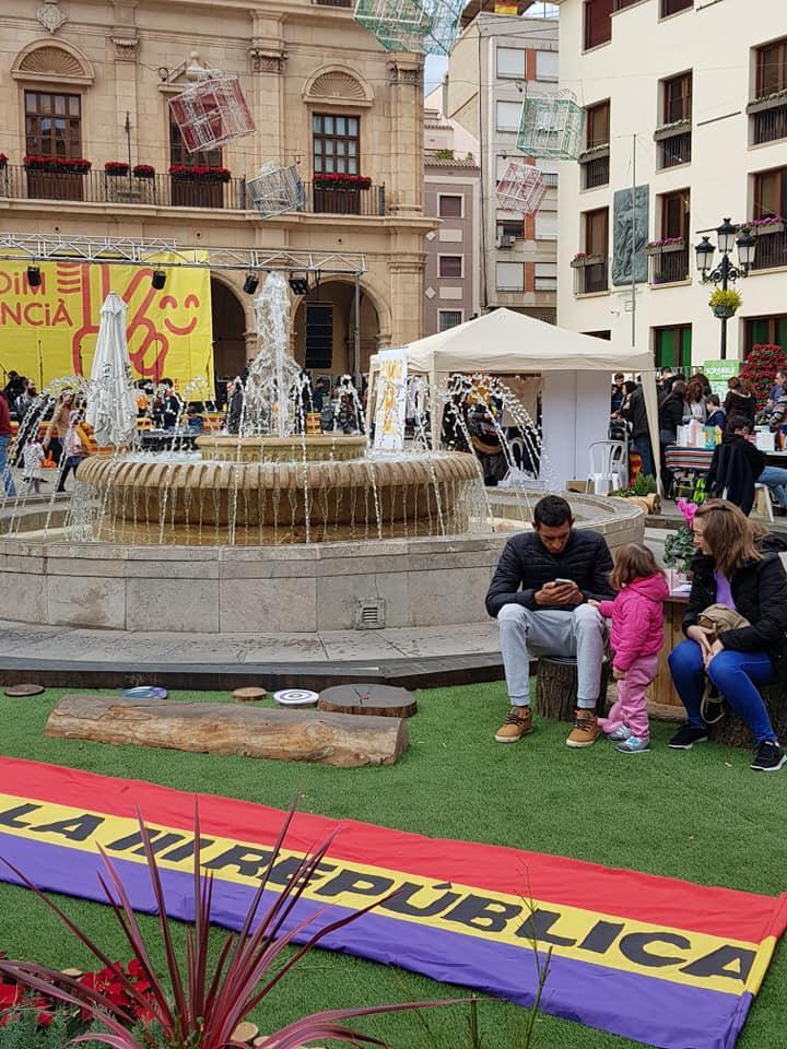 En el 'parque efímero' de Navidad, junto a la fuente, una pancarta con la bandera de la República, que también se reivindicaba la llegada de una III República.