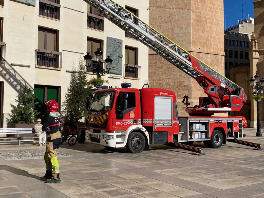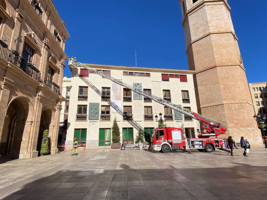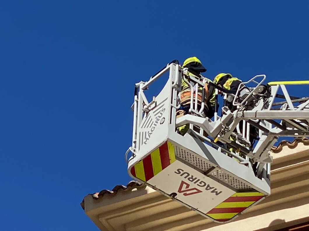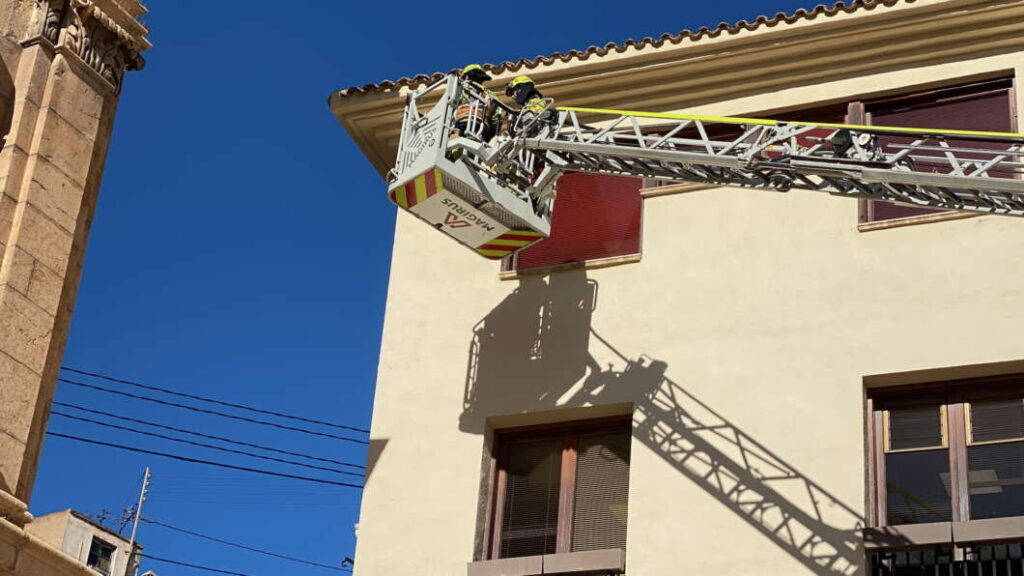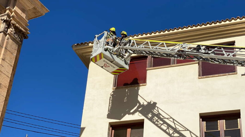 Bomberos de Castellón y Brigadas municipales revisan el estado de las tejas y reparan posteriormente los desperfectos