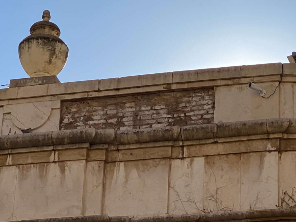 A finales del pasado año 2024 se producían desprendimientos de un elemento de la fachada superior del Mercado Central, que recae en la plaza Mayor. No pasó nada, pero hubo que hacer reparaciones, y sobre todo, vigilar el estado del edificio.