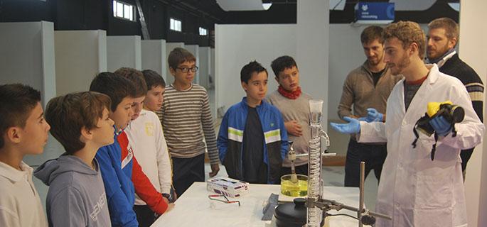 Por su parte, el Grupo de Química en Estado Sólido de la UJI explica a los visitantes las fases del proceso que se sigue para desarrollar un dispositivo solar fotovoltaico en soporte cerámico; y, a través de un laboratorio de química, realizan delante de los pequeños pruebas con probetas y elementos químicos para determinar qué sustancias son ácidas, bases o neutras.