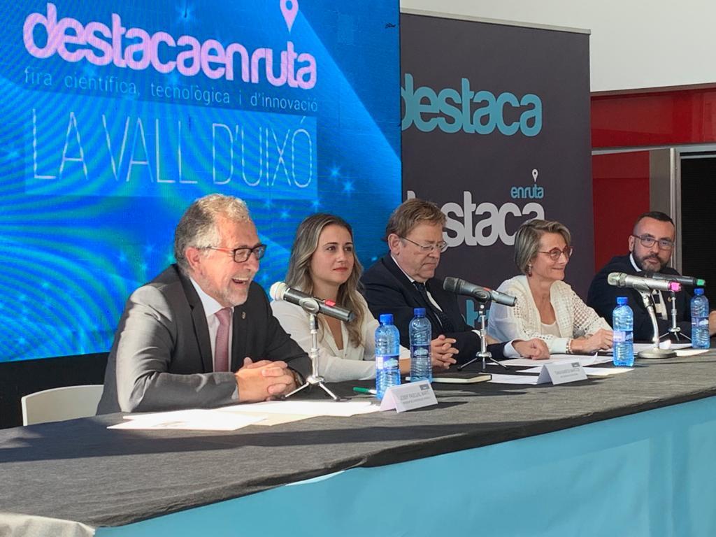 Benlloch ha participado en la inauguración de Destaca en Ruta, el evento impulsado desde el Ayuntamiento de Vila-real y la Cátedra de Innovación Cerámica de la Universitat Jaume I para exportar al territorio provincial la innovación y la transferencia científica. En esta ocasión ha recalado en la Vall d’Uixó, donde el presidente de la Generalitat Valenciana, Ximo Puig, ha abierto la cita, junto a José Benlloch, la alcaldesa de la Vall d’Uixó, Tania Baños, la rectora de la UJI, Eva Alcón, y el presidente de la Diputación, Josep Martí.