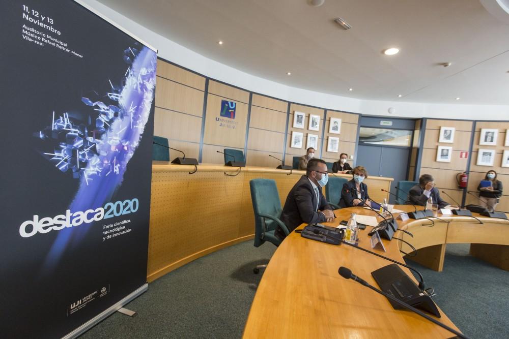 L’Ajuntament de Vila-real no ha volgut faltar a la seua cita bianual amb la ciència i a pesar de les dificultats donades per la pandèmia de la Covid-19, celebrarà Destaca 2020, la fira de transferència científica per excel·lència de tot el territori valencià que abordarà com ja es va anunciar, el paper de la dona en la ciència, i sense oblidar el context actual, la digitalització i la reactivació econòmica després de la Covid-19. Com a novetat, l’esdeveniment tindrà un format semipresencial i tindrà lloc de l’11 a 13 de novembre a l’Auditori Municipal Rafael Beltrán Moner per a garantir la seguretat. La presentació ha tingut lloc aquest matí a l’edifici de rectorat de la Universitat Jaume I de Castelló, una de les impulsores de la Fira de la mà Càtedra d'Innovació Ceràmica Ciutat de Vila-real junt amb el consistori, i ha sigut a càrrec de l’'alcalde de Vila-real, José Benlloch, la rectora de la Universitat Jaume I, Eva Alcón, i el director de la càtedra, Juan Carda, i representants del comité d'experts del certamen.