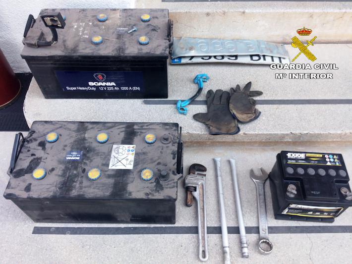 La Guardia Civil ha detenido a una persona, como supuesto autor de numerosos hurtos de baterías. La actuación se inició con motivo de los servicios que la Guardia Civil tiene establecidos para evitar robos en establecimientos, polígonos y vehículos, cuando tuvieron conocimiento de una oleada de hurtos de baterías de camiones de gran tonelaje en la población de Vall d'Uixó. Inmediatamente los agentes iniciaron una investigación, que tras varios días de intensas gestiones, dieron como resultado la localización, identificación y detención de un varón de 30 años de edad como supuesto autor de hurtos de baterías.