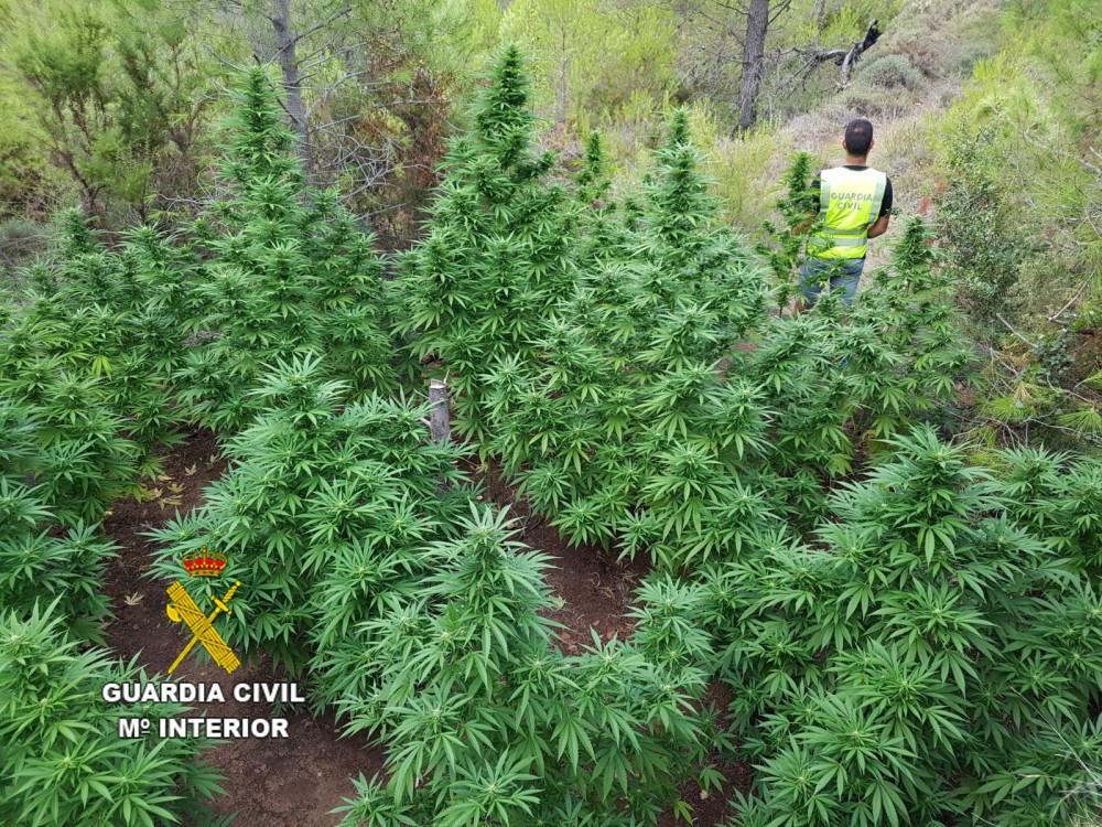 La actuación se inició con motivo de los servicios que la Guardia Civil tiene establecidos para combatir el tráfico y cultivo de sustancias estupefacientes en la provincia de Castellón, cuando agentes del Cuartel de Onda descubrieron una plantación ilegal de marihuana escondida en una zona boscosa de pinos del término municipal de Sueras.