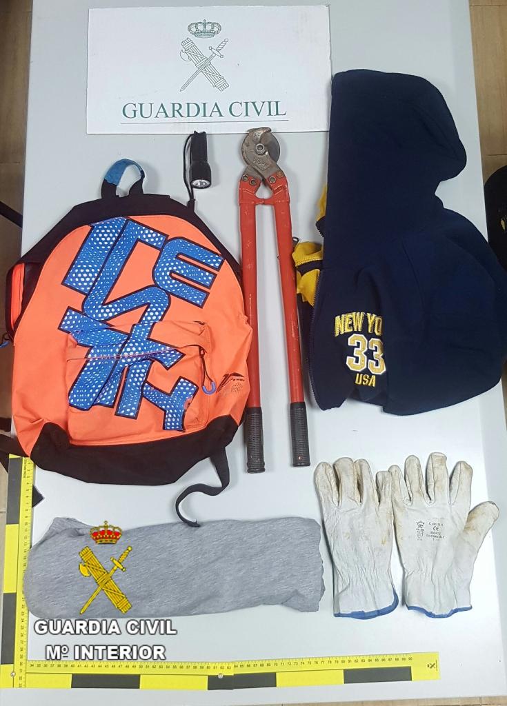 Inmediatamente los guardias civiles accedieron al interior de la empresa, sorprendiendo a dicha persona cortando cable de cobre con una cizalla, y este al verse sorprendido emprendió rápidamente su huida a pie, siendo interceptado momentos después.