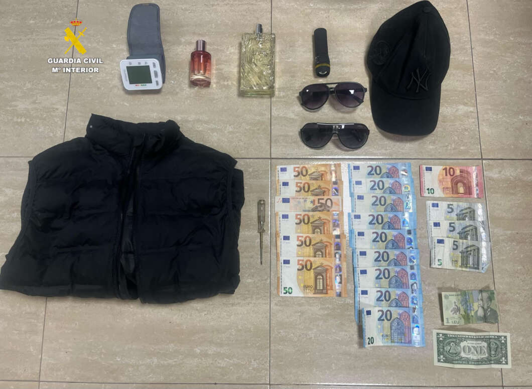 Gracias a un dispositivo de localización, se logró ubicar a los sospechosos y proceder a su arresto. En el vehículo en el que se desplazaban se hallaron diversos objetos personales sustraídos, además de una cantidad considerable de dinero en efectivo.