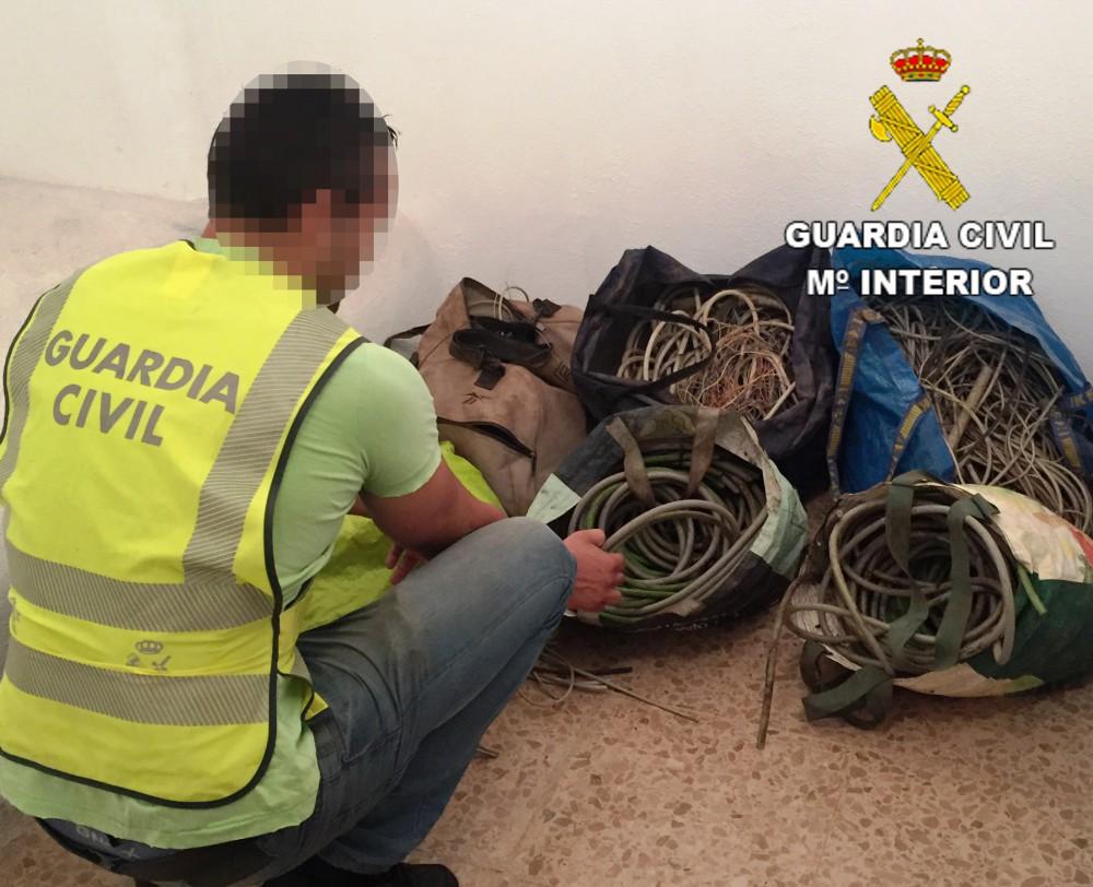 Los guardias civiles hallaron en las inmediaciones el vehículo de esta persona, el cual tenía en su interior 400kg de cableado de cobre, el cual supuestamente acababa de sustraer.