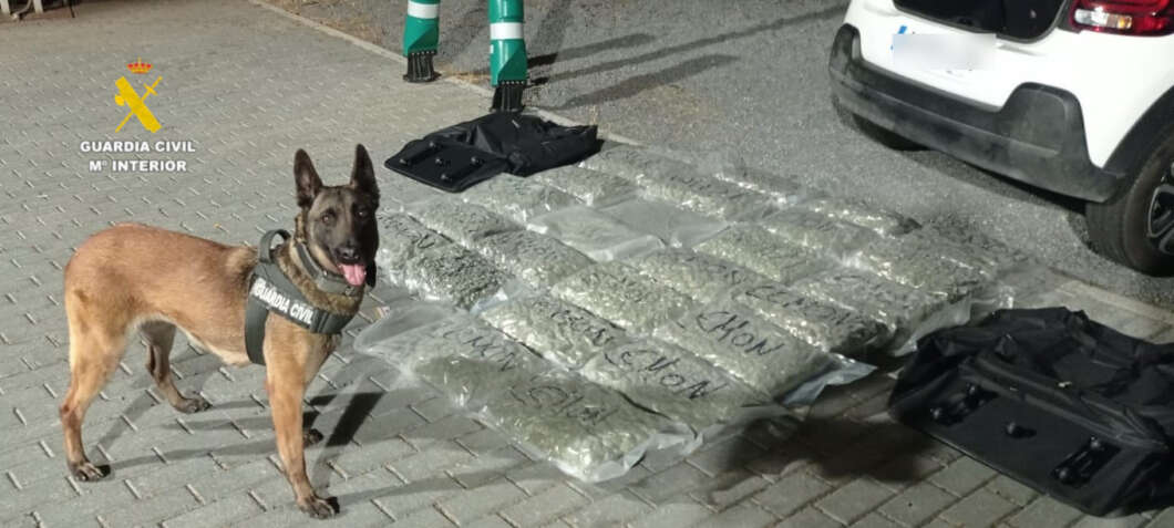 Por todo ello, se procedió a la detención del ocupante del vehículo al que se le atribuye un delito contra la salud pública (tráfico de drogas) y a la incautación de un total de 26 kilos de marihuana en cogollos además de una tableta de polen de hachís.