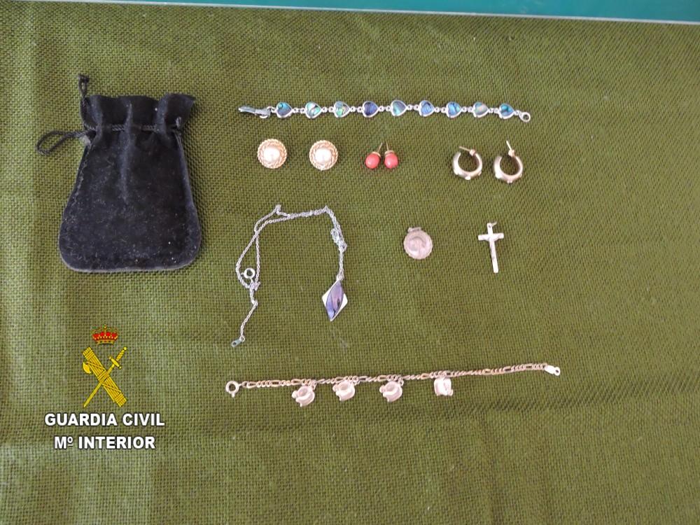 Tras proceder a su identificación, los guardias civiles hallaron entre sus pertenencias diversas joyas y enseres, no pudiendo argumentar su procedencia.