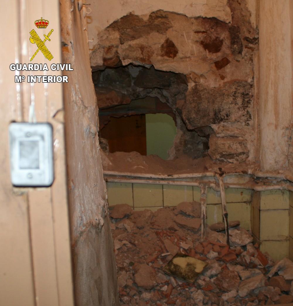 Alertadas las patrullas de la Guardia Civil y con la inmediata llegada de una patrulla, los asaltantes salieron huyendo por el mismo butrón realizado, sin darles tiempo para hacerse con el dinero, siendo perseguidos por los miembros de la Guardia Civil. En su huida los atracadores agredieron a uno de los agentes, teniendo que recibir asistencia médica.