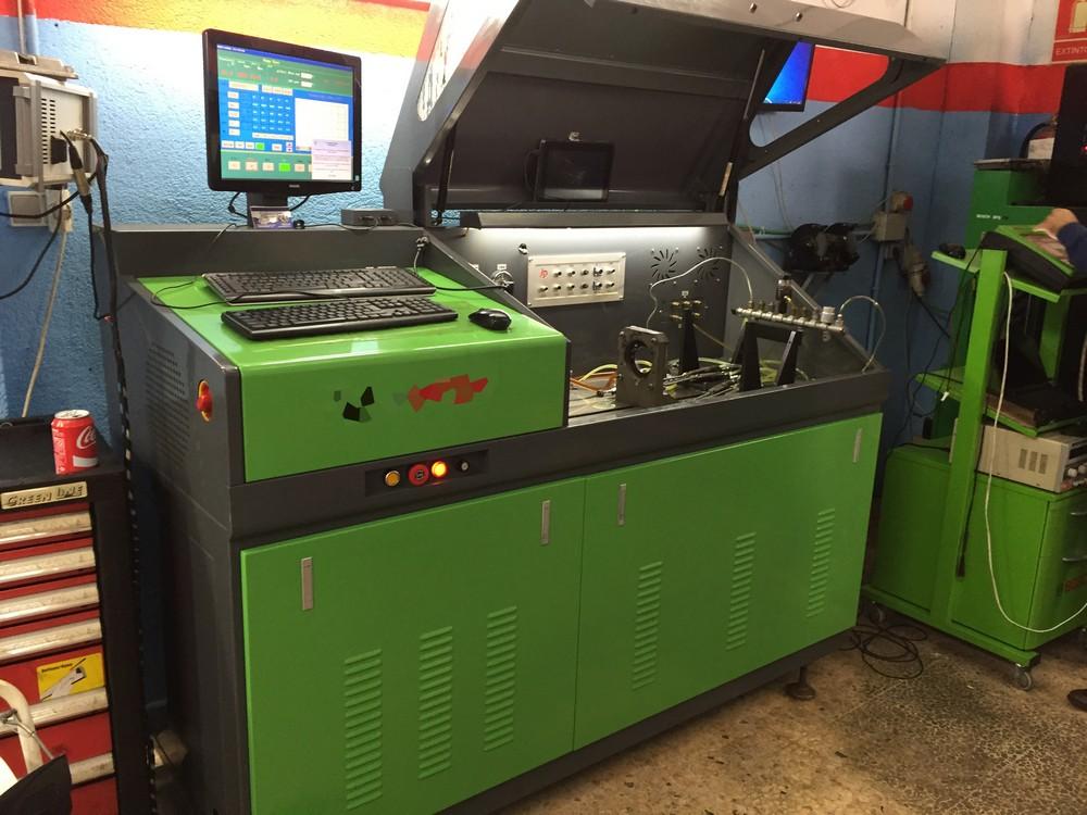Así mismo, en el taller se encontraban tres máquinas de grandes dimensiones del color y con el rotulo y nombre de la empresa, siendo una de ellas un comprobador de inyectores y dos bancos de comprobadores de bombas inyectoras, que pese a los rótulos estas máquinas no pertenecen a la marca ni el software tampoco, lo que hace pensar al cliente que su servicio es realizado con el aval de un conocido grupo, cuando no es así.