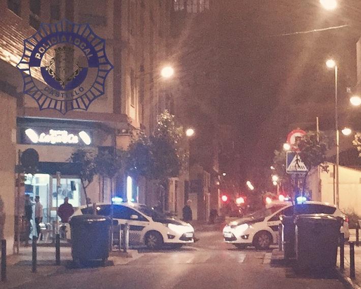 Hasta el lugar se desplazaron inmediatamente varias patrullas de la Policía Local de Castellón y de la Policía Nacional, cuyos agentes, al aproximarse al lugar de los hechos, observaron que efectivamente había una pelea en la calle Lagasca y que tres personas se estaban agrediendo en mitad de la calzada con botellas de vidrio. Rápidamente, los policías mediaron en la disputa y consiguieron separar a las partes implicadas. En ese momento, uno de los involucrados en el altercado intentó agredir a dos agentes de la Policía Local y los policías, tras repeler la agresión, procedieron al arresto de B.M., de 23 años de edad por un presunto delito de atentado a agentes de la Autoridad.