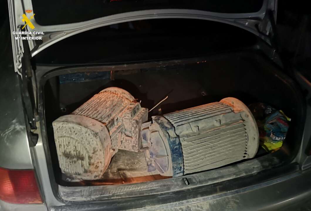 Al llegar al lugar, los guardias civiles encontraron la cadena de acceso rota y sorprendieron a los sospechosos mientras cargaban el material en un vehículo.