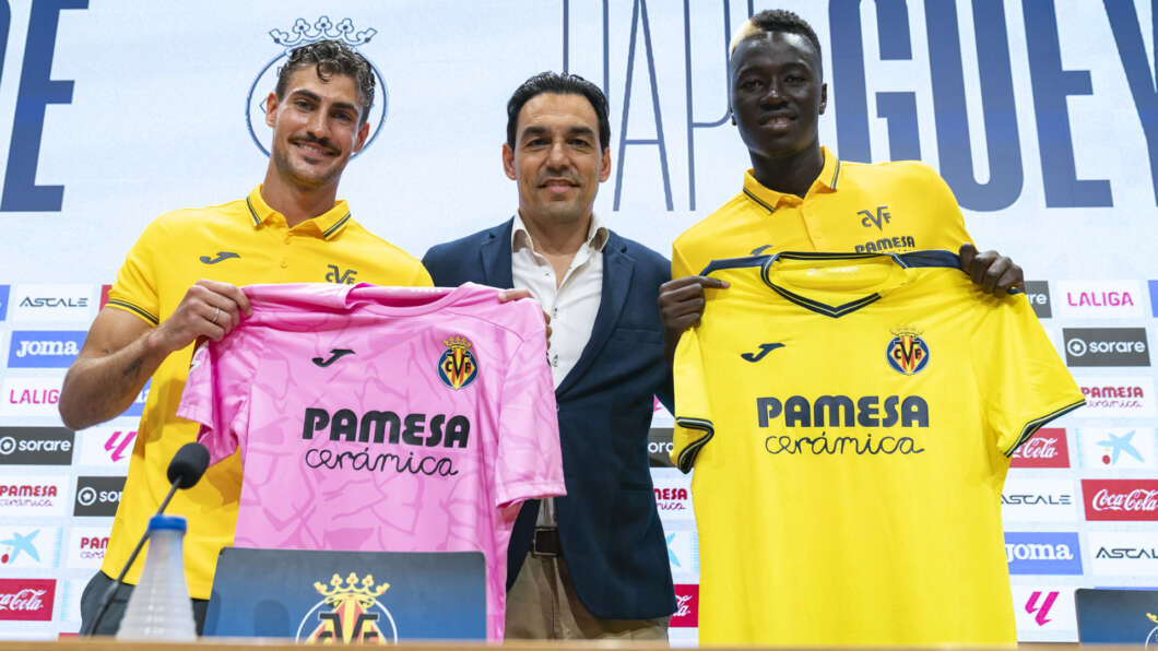 El Villarreal ha celebrado el acto de presentación de Diego Conde y Pape Gueye como nuevos futbolistas 'groguets'. Las dos incorporaciones del Submarino han comparecido en la sala de prensa del Estadio de la Cerámica, acompañados por el director de fútbol de la entidad, Miguel Ángel Tena.