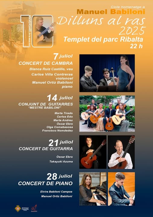 Organizado por el área de Cultura del Ayuntamiento de Castelló y la Fundación Guitarrista Manuel Babiloni, el ciclo ‘Dilluns al ras’ no solo mantiene vivo el recuerdo del artista, sino que también impulsa el talento musical local e internacional en un entorno único y accesible para todos los públicos.