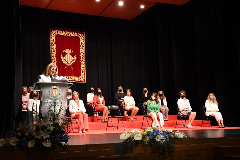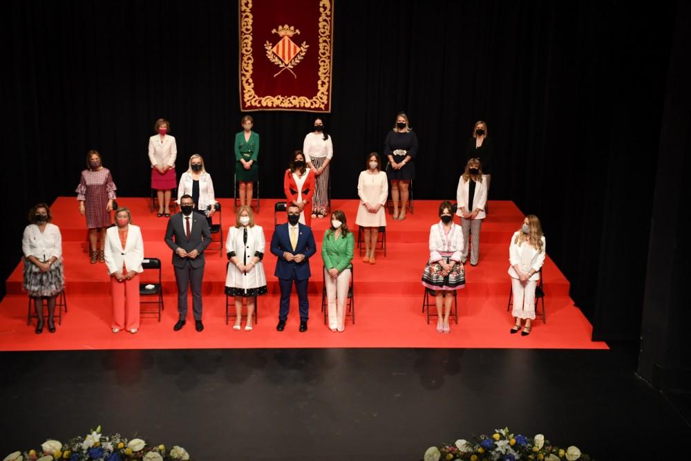 A l'acte han assitit també les reines actuals, Carmen Rubert i Maria Carmona, amb les seues respectives corts d'honor