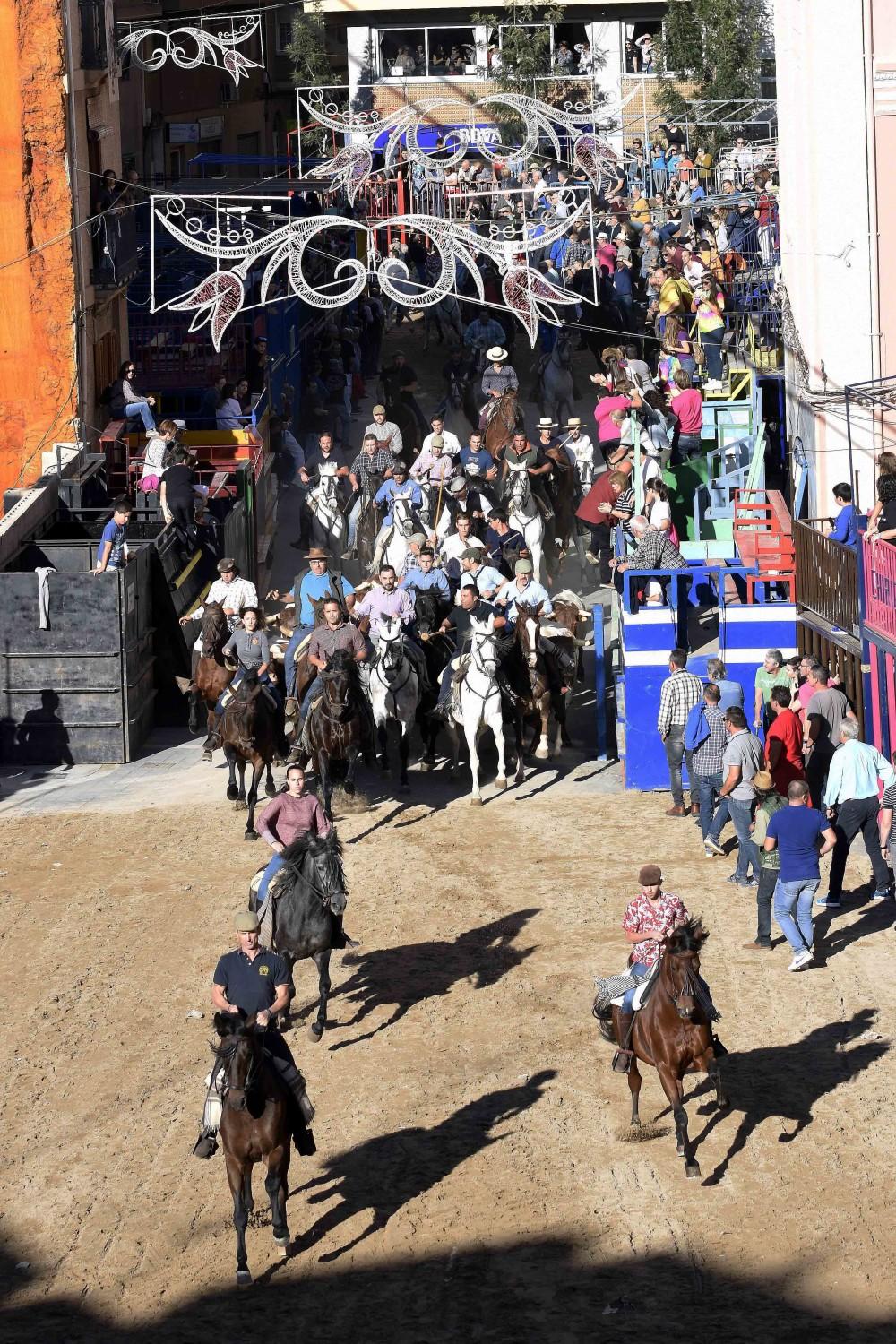 El matí començava amb la primera entrada de mansos amb cavalls, amb gran afluència d'espectadors i realitzat per l'Associació Aires Nuevos. Els genets han dirigit la manada de manosos per tot el carrer Concepción al pas i en arribar al Pla i durant el carrer Calatrava ha arribat la la emoció, ja que els cavalls han realitzat aquest últim tram al galop. En abandonar el Raval, els genets han rebut una gran ovació per part del públic que allí s'ha congregat.