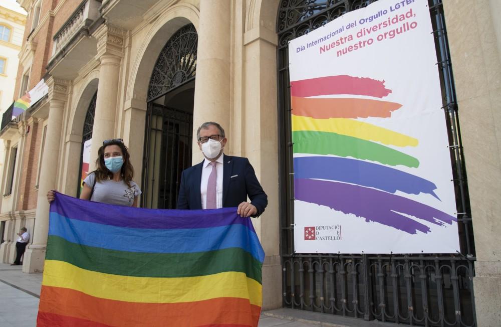 La Diputació de Castelló lluirà durant aquesta setmana en els balcons i finestrals del Palau Provincial l'emblema del col·lectiu Lgtbi en commemoració del Dia Internacional de l'Orgull. Es tracta de la primera vegada en la història que la institució provincial se suma plenament a la reivindicació d'una societat plural, diversa, oberta i lliure de prejudicis, un missatge que quedarà exposat a la vista de tothom amb quatre pancartes disposades al llarg de la façana de la seu principal de la Diputació.
