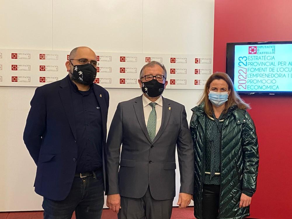 La Diputació de Castelló ha presentat aquest dimecres el seu pla de treball per a impulsar els pròxims dos anys l’ocupació i l’emprenedoria a les comarques castellonenques fins a 2023. Després de comptar ahir amb l’aval del ple, el president de la corporació, José Martí, i el diputat de Promoció Econòmica, Pau Ferrando, han detallat hui públicament el contingut de la nova Estratègia Provincial per al foment de l’ocupació i l’emprenedoria, que comptarà amb un pressupost d’1,2 milions d’euros.