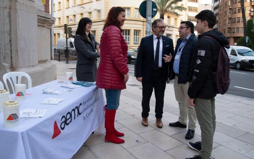El president de la Diputació, José Martí, i la vicepresidenta, Patricia Puerta han visitat la taula informativa de la Associació d'Esclerosi Múltiple de Castelló (AEMC)