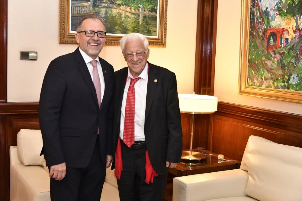 José Martí s'ha reunit aquesta vesprada amb el pare Ángel en la Diputació abans de la conferència que el sacerdot va protagonitzar en el saló de recepcions del Palau Provincial, dins del cicle de xarrades 'En primera persona' que organitzada la Fundació Caixa Castelló.