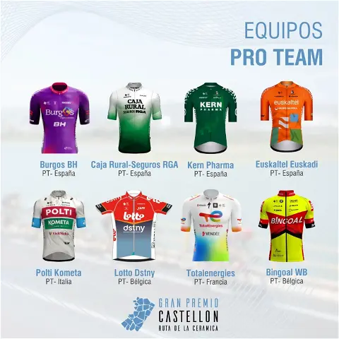 También estarán todos los equipos Continentales Profesionales españoles: el Euskaltel Euskadi de País Vasco, el Equipo Kern Pharma y el Caja Rural Seguros RGA de Navarra, el Burgos BH de Castilla y León, además del Polti Kometa italiano, el equipo profesional del gran Alberto Contador. En esta lista también se incluyen el Total Energies francés o el Lotto Dstiny y el Bingoal belga.