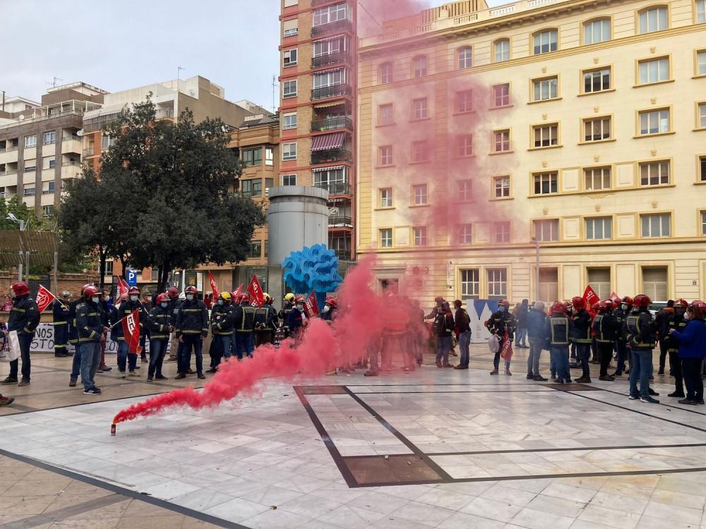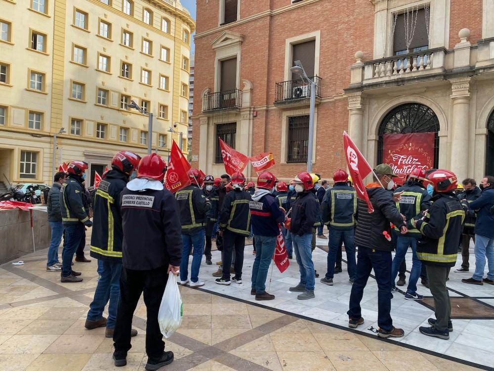 Tal como habían anunciado, los bomberos del Consorcio se manifestaron en las puertas del palacio de las Aulas, reivindicaban la carrera profesional, la contratación de personal y las mejoras en el servicio.