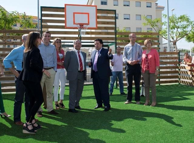Mediante una inversión de 155.000 euros, en dos anualidades, la institución provincial ha construido dos multipistas de césped artificial, para la práctica de fútbol y baloncesto, y una zona de recreo infantil para los más pequeños.