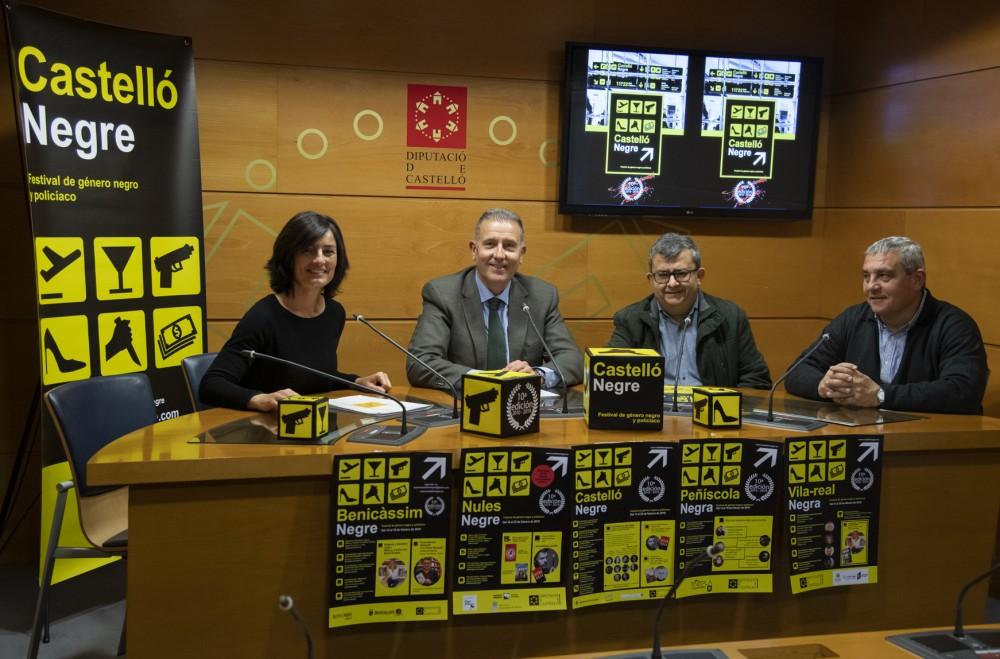 La Diputación de Castellón ayudará un año más a dinamizar la programación de 'Castelló Negre', X Certamen Nacional de Género Negro y Policíaco. Este año serán un total de 40 los actos programados y que tendrán lugar del 11 al 22 de febrero en cinco municipios de la provincia que son Benicàssim, Castellón, Peñíscola, Vila-real y Nules. Una edición de un festival que se consolida como el segundo festival nacional de género negro tras la Semana Negra de Gijón y por delante de Getafe o Barcelona Negra.