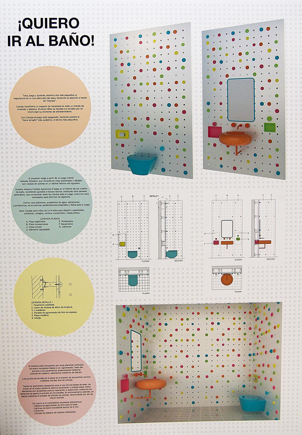 Por su parte, en Diseño de Baño, el primer premio, dotado con 2.000 €, lo ganaron los diseñadores Ignacio Gómez Benavente y Tania Molina Salazar, de la Escola d´art Superior de Disseny de València (EASD) por "¡Quiero ir al baño!". Según el jurado, "es una brillante aportación al concepto de baño personalizado y adaptable, una solución en la que no sólo se ha pensado en la estética sino también en la tecnología de los diferentes aparatos sanitarios". En este caso, el premio no está fundado en la estética sino que se valora sobre todo el sistema y las posibilidades que ofrece la idea como punto de partida para futuros desarrollos.