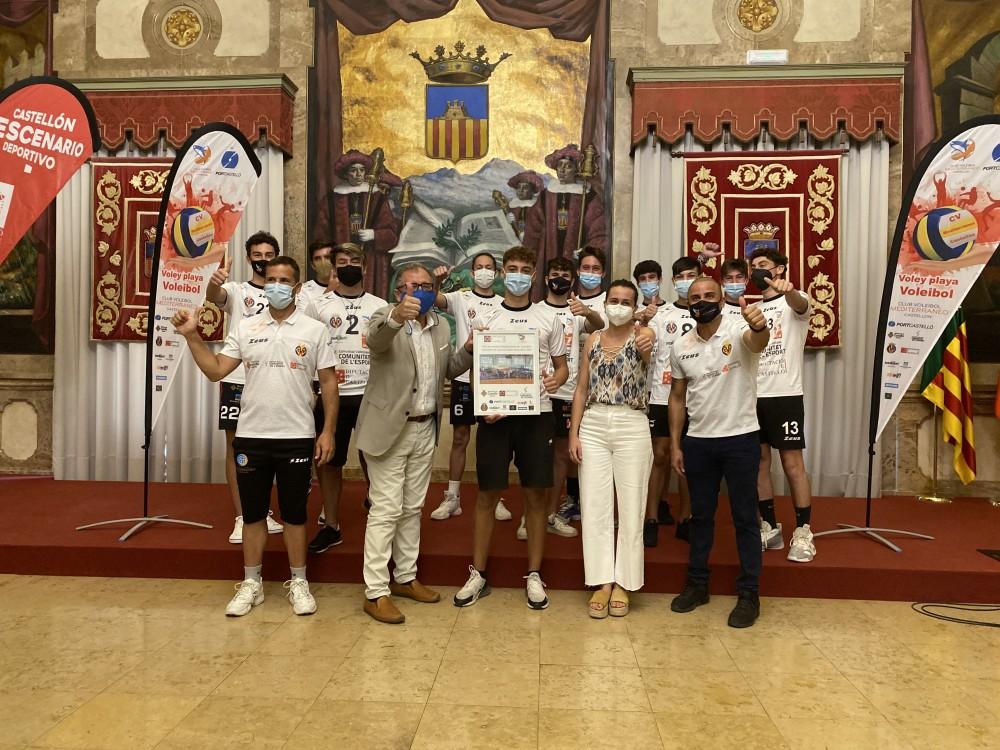 El presidente de la Diputación, José Martí, y la diputada provincial de Deportes, Tania Baños, han recibido a sendas representaciones del Club Voleibol Mediterráneo de Castellón y del Club de Natación Azahar Sincro, con motivo de los recientes éxitos cosechados por estas formaciones del deporte base. El cadete masculino del Club Voleibol Mediterráneo de Castellón se proclamó campeón de España el pasado mes de junio, precisamente, en Castelló. Por su parte, los éxitos del Club de Natación Azahar Sincronizada están relacionados con la medalla de bronce conseguida por Minerva Mondéjar en el campeonato de España alevín de natación artística y las otras 18 obtenidas por el club en el campeonato autonómico de verano celebrado recientemente en Castelló, en el que se clasificó en tercera posición.