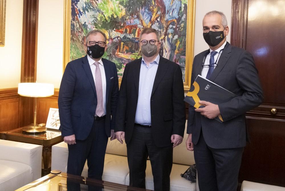 Ambos han analizado el actual escenario económico, protagonizado por el alza en los precios, y las opciones para salir de la crisis. Los empresarios castellonenses representados en la confederación, han planteado también vía Luis Martí, la finalización de infraestructuras estratégicas como el Corredor Mediterráneo. A dicha reunión también ha estado presente el secretario de la CEV en Castellón, Salvador Serrano.