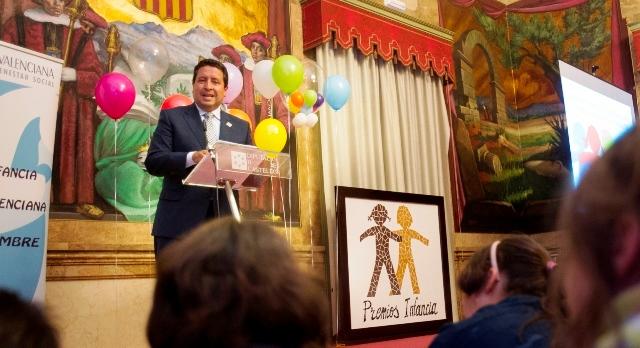 El salón de Recepciones de la Diputación de Castellón se ha convertido esta tarde en un escenario de ilusión para más de 200 niños y representantes de instituciones y centros de menores de la Comunidad Valenciana. El motivo del acto, organizado por la conselleria de Bienestar Social, ha sido la conmemoración del Día Internacional de la Infancia, fijado el 20 de noviembre, y del 25 aniversario de la Convención sobre los Derechos del Niño. Además, también se ha celebrado la entrega de los Premios Infancia 2014.