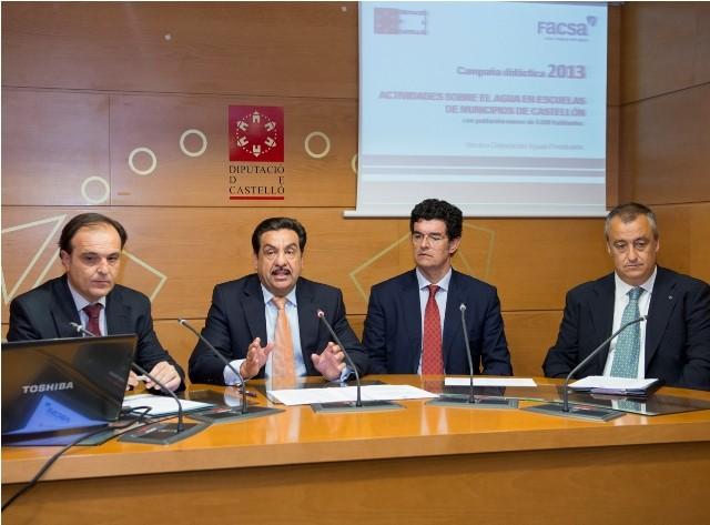 La Diputación de Castellón está realizando una campaña de sensibilización sobre el uso racional del agua en colegios de municipios menores de 5.000 habitantes de la provincia, que concluirá el próximo 14 de junio con el alcance a 500 escolares de 12 municipios. El vicepresidente provincial de Infraestructuras, Francisco Martínez, ha explicado esta mañana junto al presidente de Facsa, Enrique Gimeno, y el subdirector del área de Saneamiento y Depuración de esta compañía, José Claramonte, las acciones formativas que la campaña de este año contempla en los municipios de La Pobla de Benifassà, Lucena del Cid, Torre d’en Doménec, El Toro, Cortes de Arenoso, Vistabella, Alfondeguilla, Artana, Cinctorres, Salzadella, Xert y Tírig.